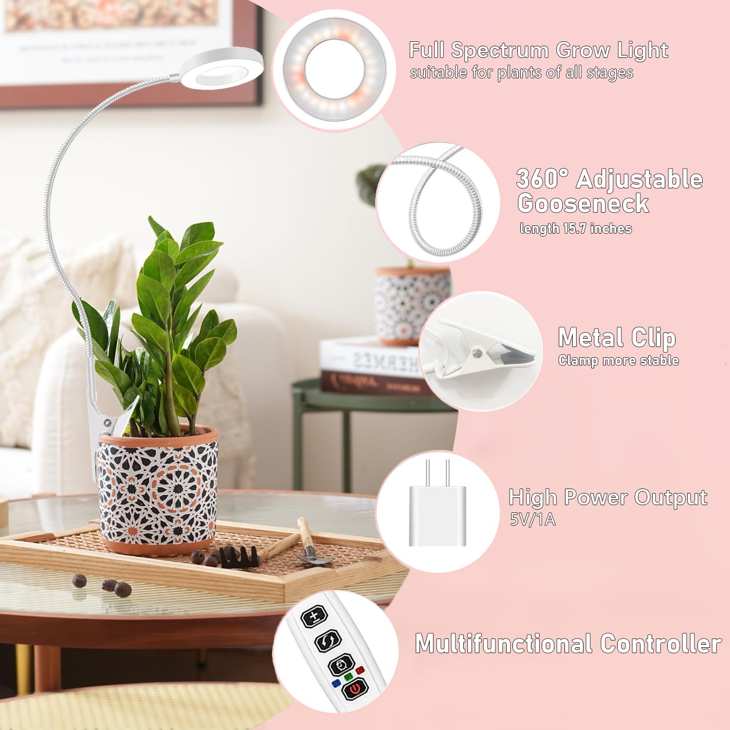 - **Flexible Placement**: Equipped with a 360° rotating goose neck and a sturdy clamp, this grow light can be easily attached to plant pots, offering optimal light positioning for your greenery.