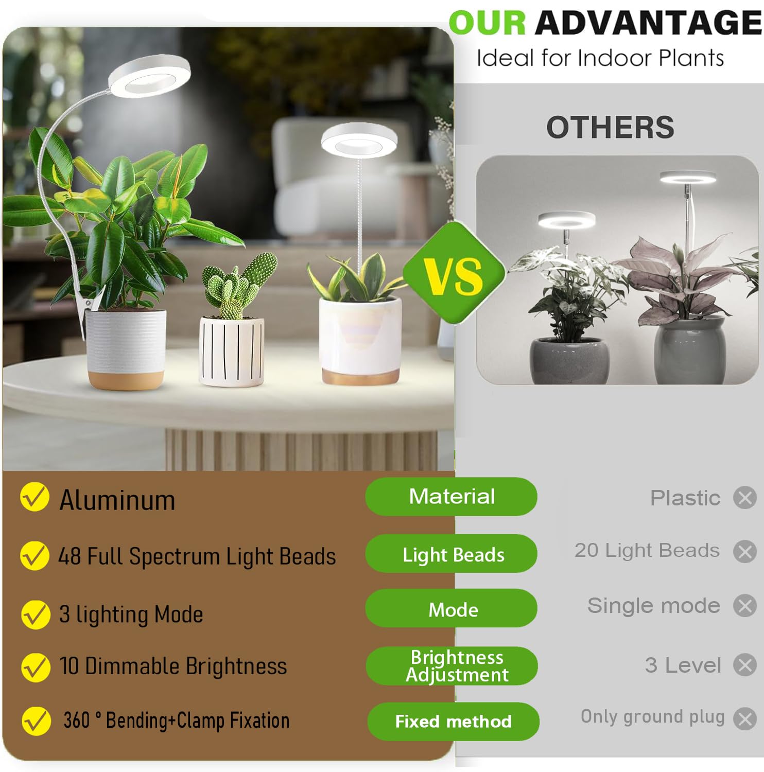 - **Powerful Full Spectrum**: Delivers 10W of output power and three color temperature options (660NM to 6500K), providing flicker-free, soft light that mimics natural sunlight for healthier plant growth.
