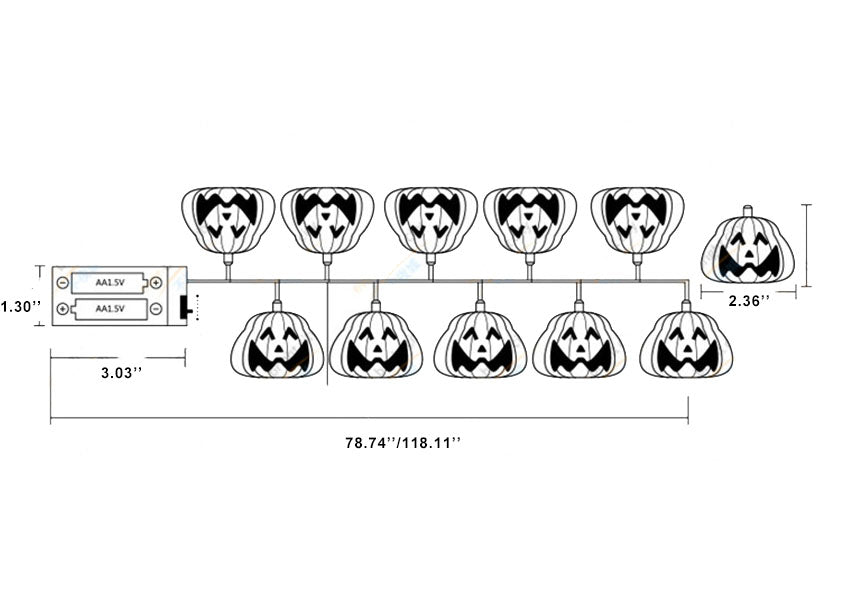 Skorter | Halloween Pumpkin Festive Lamp Artificial 10/20 Lights Plastic Battery USB LED String Lights