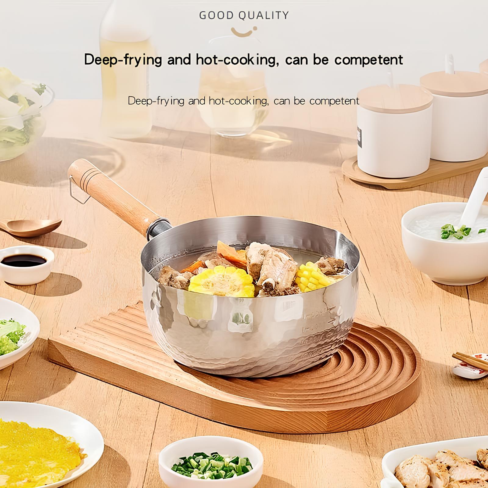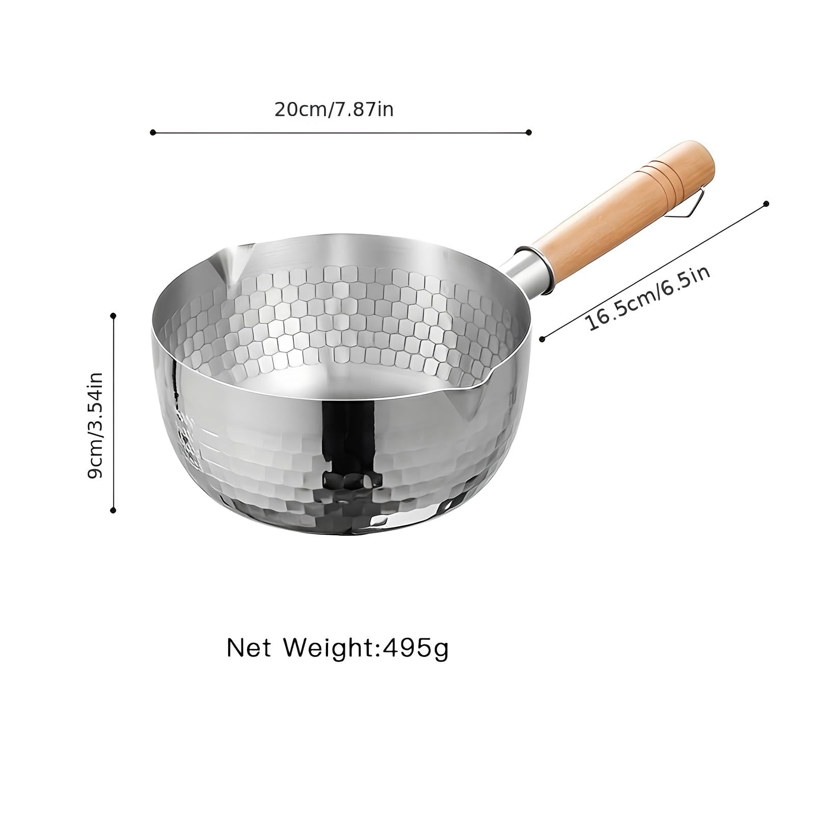 Introducing the Skorter 20 cm, crafted from stainless steel with a brilliant mirror-like finish! This product features an ergonomic wooden handle and pouring edges on both sides, making this Skorter an ideal blend of elegance and practicality for your cooking preparations.