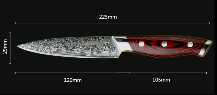 Explore the versatility of Damas Universal Skorter with a blade available in 12 cm or 20.3 cm tailored to your needs. The VG-10 Damascus steel blade, rated at 67 on the HRC scale, showcases patterns of good fortune that represent history and refinement.
