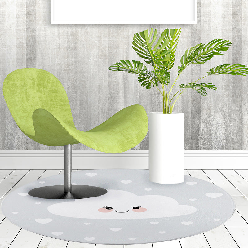 Skorter | Children's Room Rug in Gray Fairy Tale Clouds Heart Print Rug Polyester Stain Resistant Non-Slip Area Rug