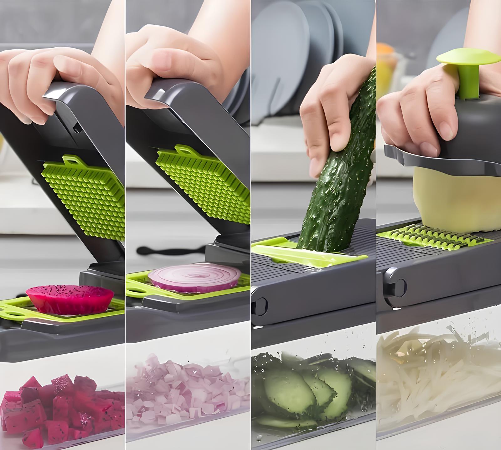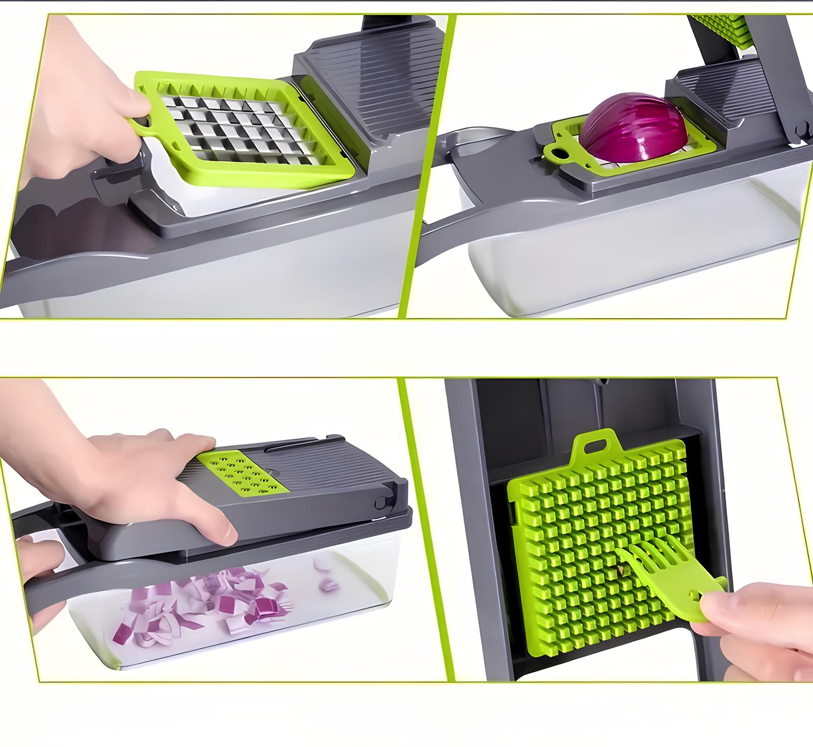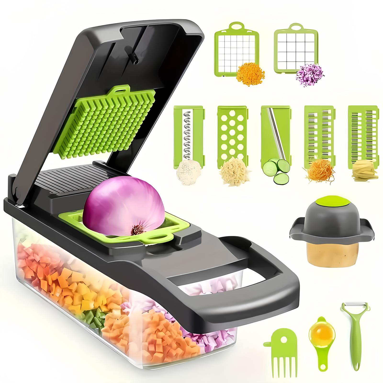 With its 16 multifunctional features, this Skorter transforms the way you prepare meals. Equipped with interchangeable blades, it enables you to dice, grate, and slice vegetables quickly and effortlessly, allowing you to save time and energy.