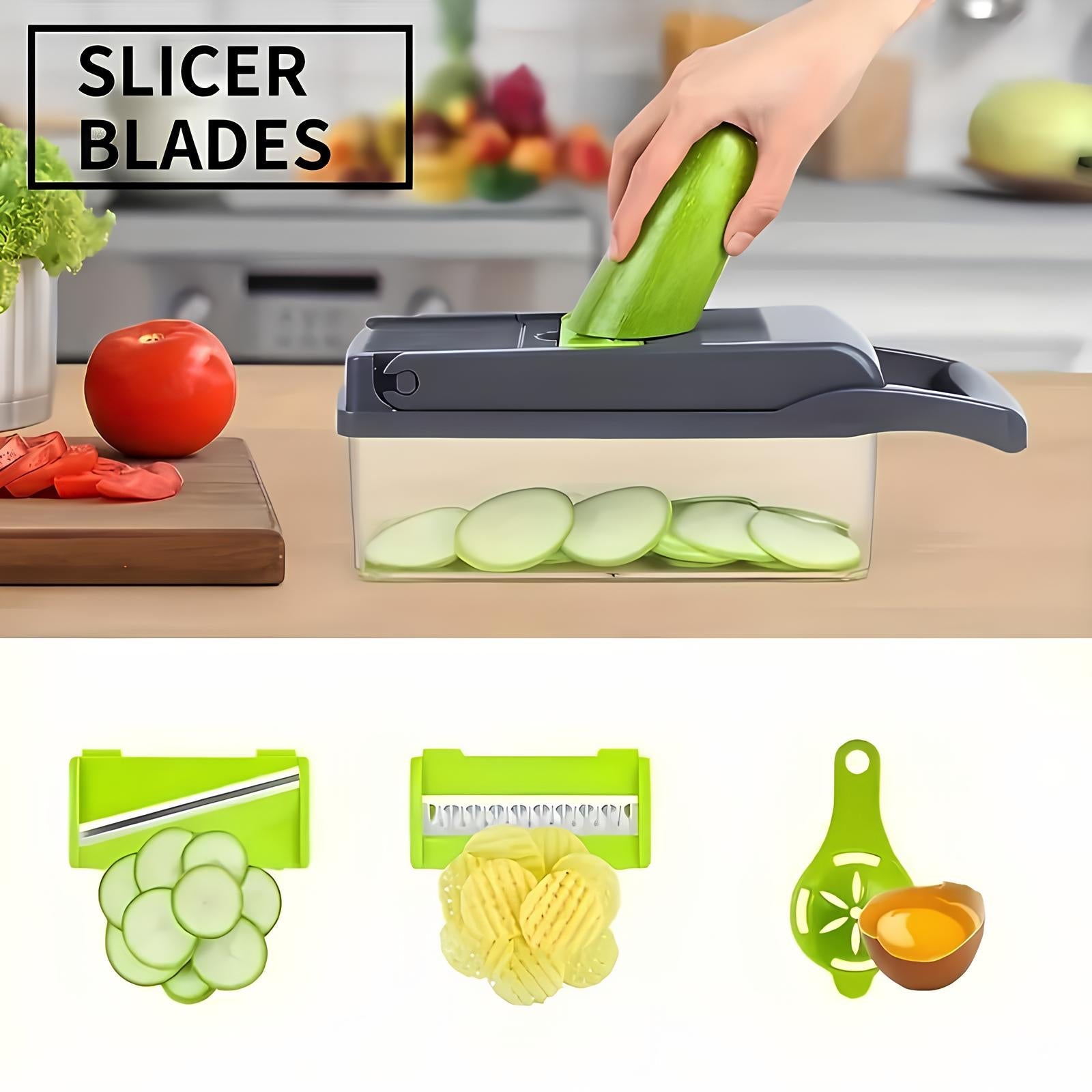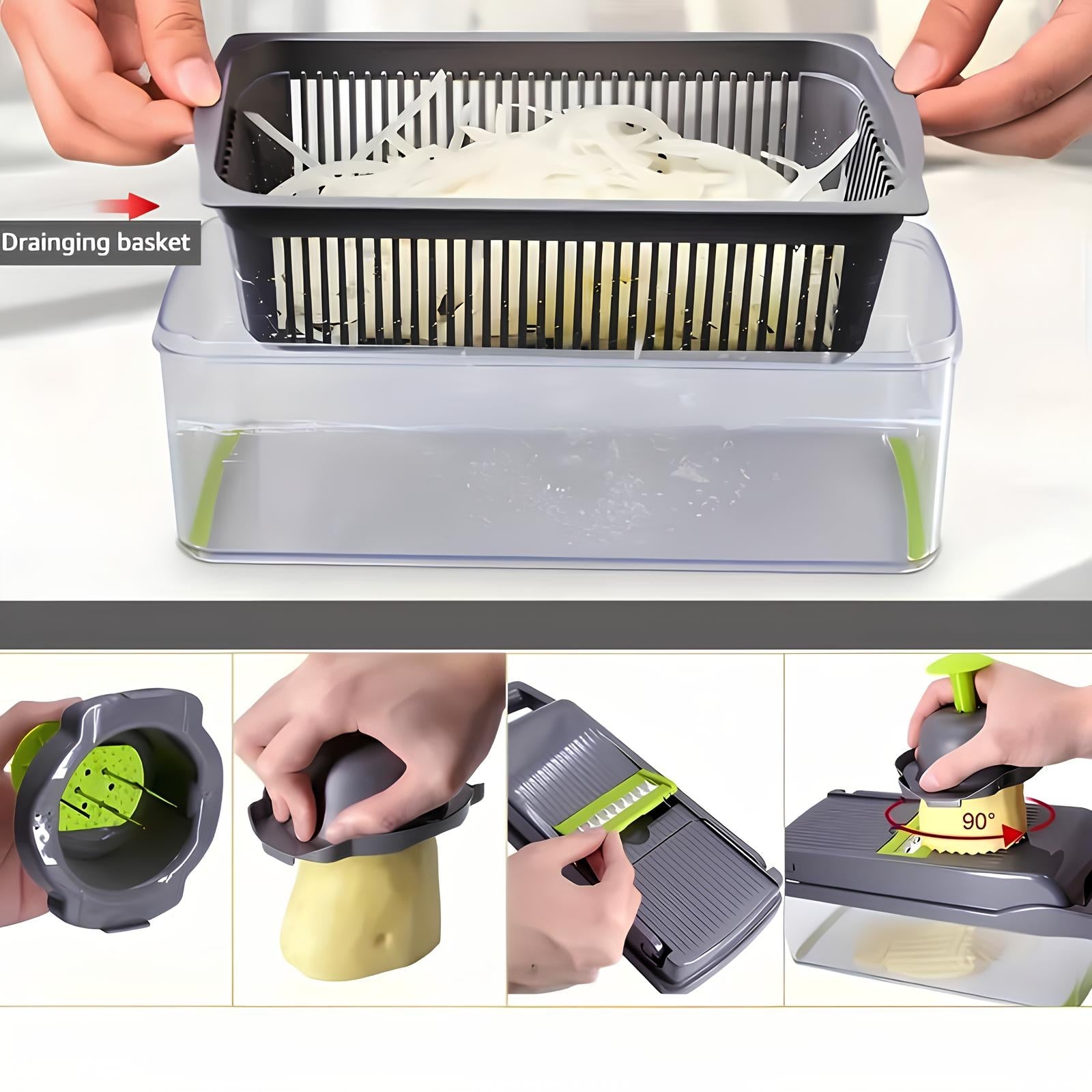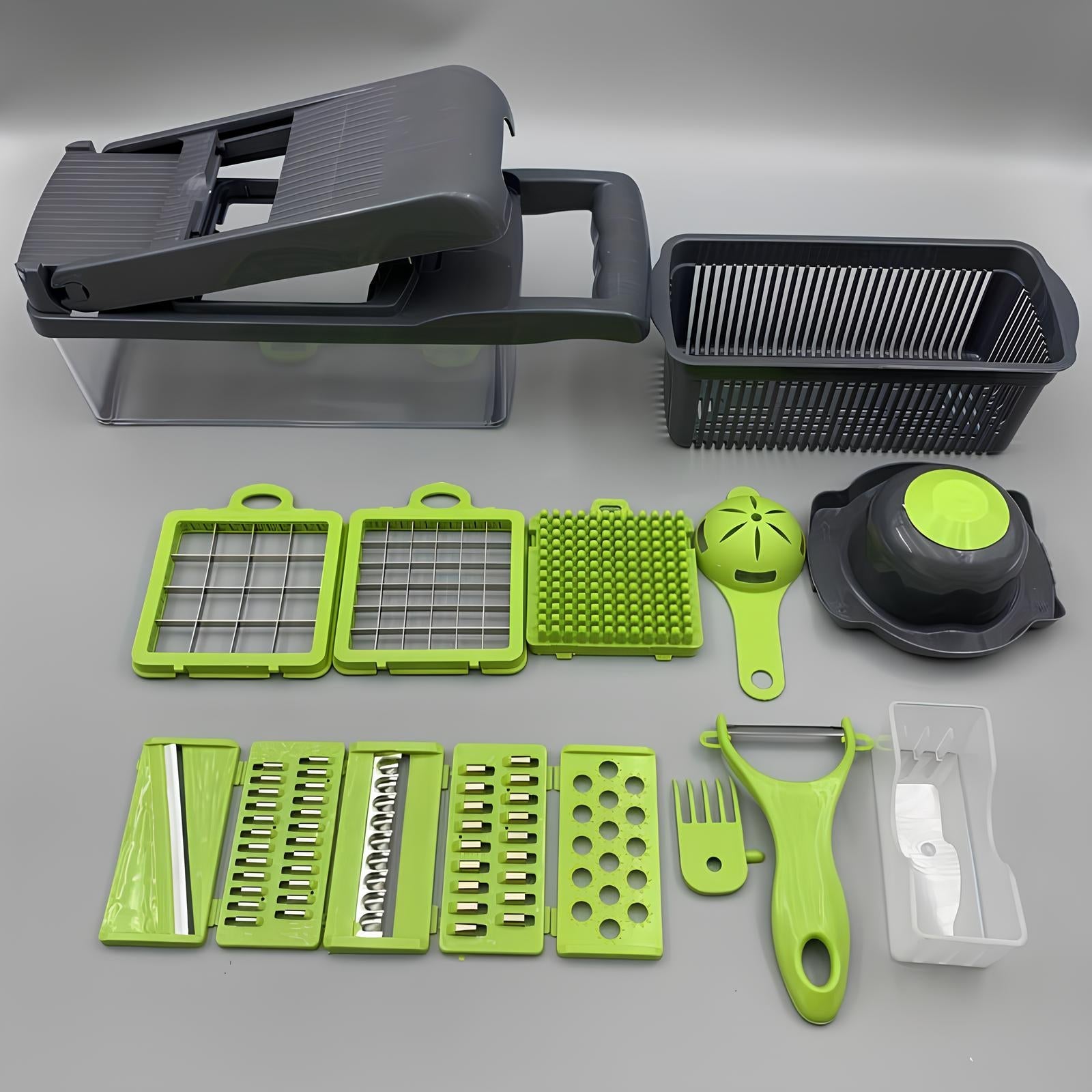 With its 16 multifunctional features, this Skorter transforms the way you prepare meals. Equipped with interchangeable blades, it enables you to dice, grate, and slice vegetables quickly and effortlessly, allowing you to save time and energy.