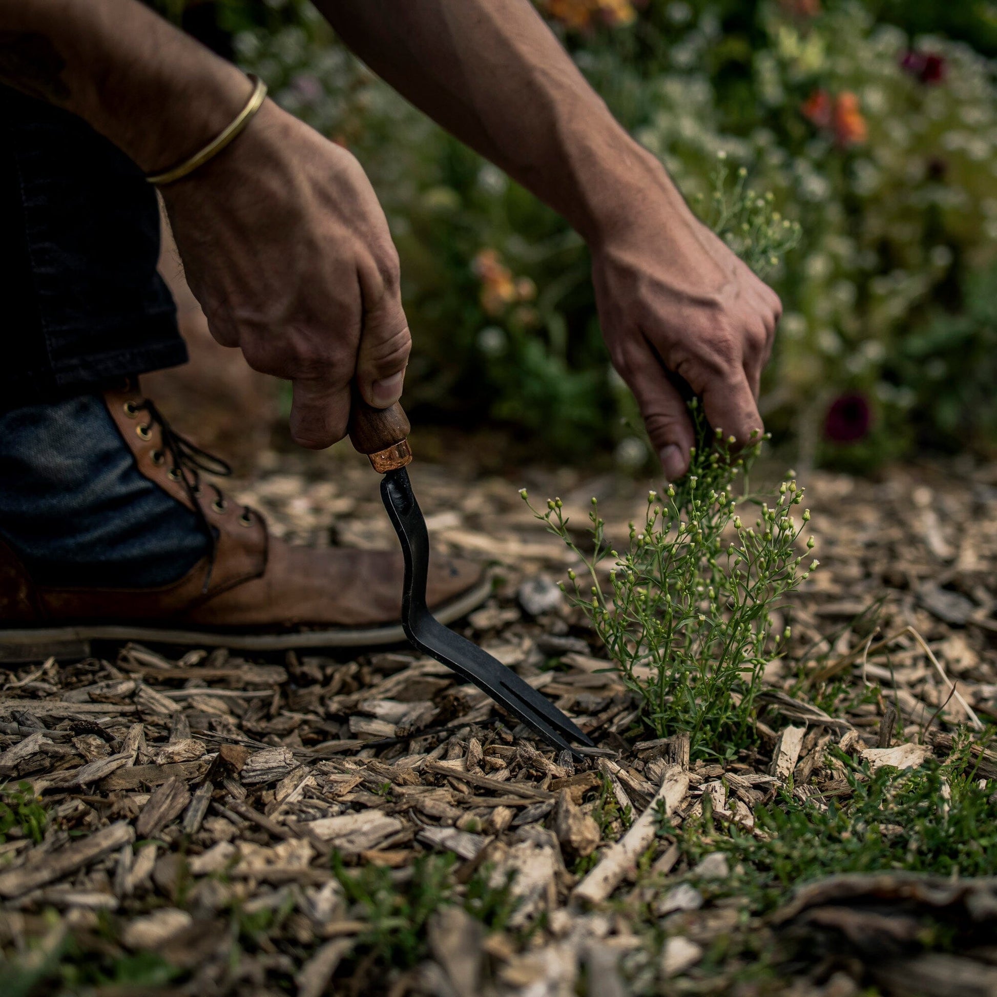 Are you in need of eliminating stubborn, deep-rooted weeds? The Dandelion Weeding Fork is here to help. This tool is expertly crafted to precisely and efficiently extract tough roots without disturbing the surrounding soil and plants. Say goodbye to bothersome dandelions and other unwelcome invasive species. Constructed with an ergonomic, heat-treated stainless steel blade and a comfortable wooden handle.