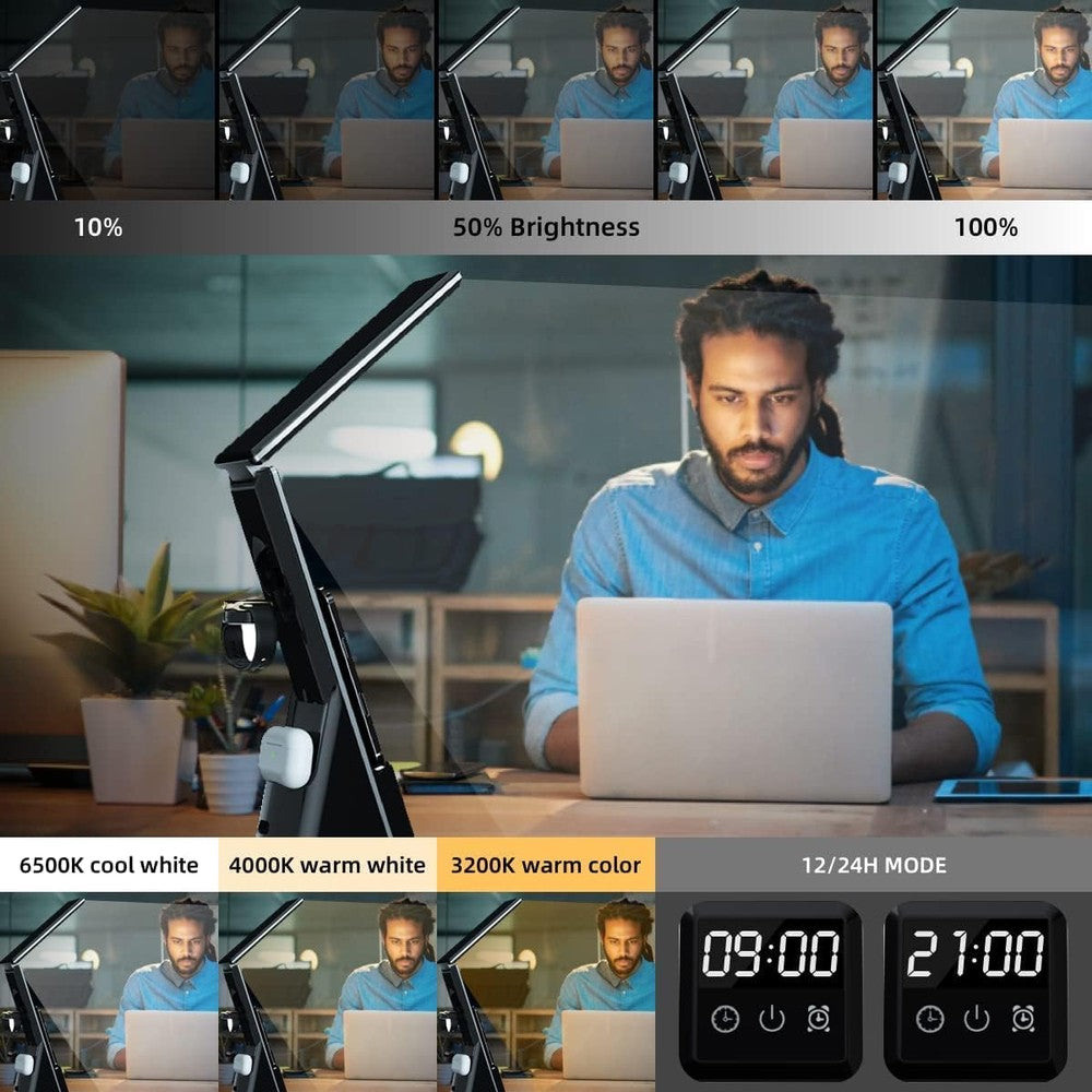 Brighten up your workspace and streamline your tasks with the LED Desk Lamp that comes with a wireless charging capability. This versatile lamp provides adjustable lighting to improve your work area, and it features a built-in wireless charger that can juice up your phone, AirPods, and Apple Watch at the same time. Its sleek and compact design, along with its foldable functionality, makes it ideal for any desk or bedside table, while the integrated clock and alarm features further enhance your daily routine. Boasting top-notch quality at an unbeatable price, this lamp is an excellent choice for anyone looking to add a chic and functional piece to their home or workplace.