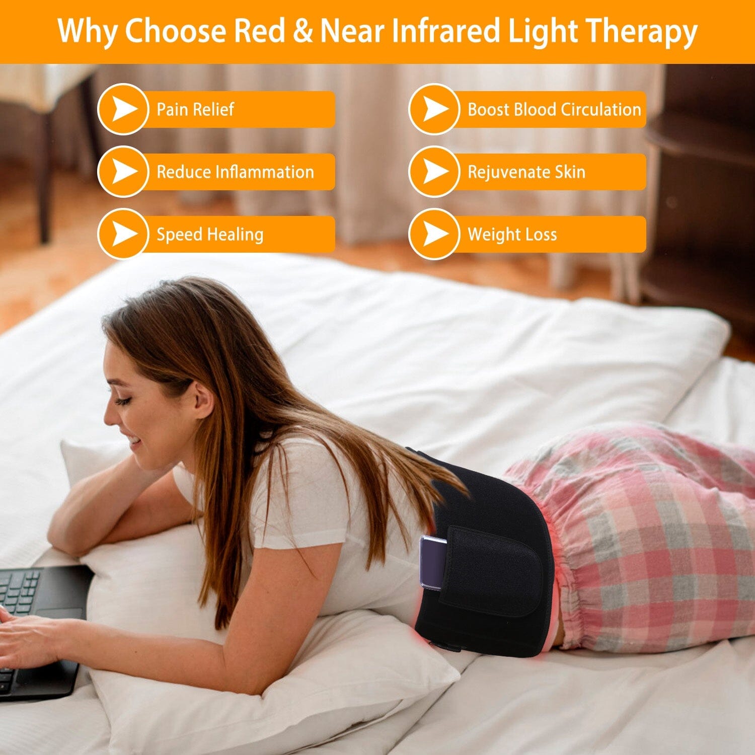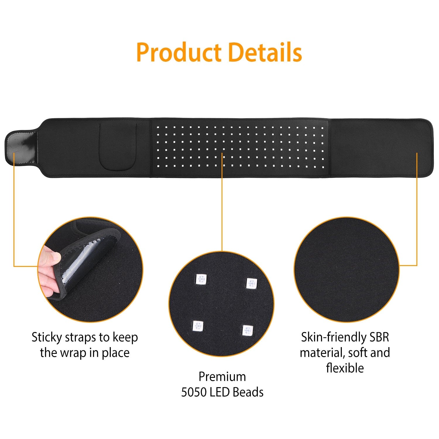 This therapy belt operates at wavelengths of 660nm and 850nm, allowing it to penetrate the deeper layers of the skin, thereby improving blood circulation, enhancing metabolism, and boosting cellular vitality and regeneration. It provides low levels of heat that ensure your skin remains unharmed or free from burns. Its extensive treatment area makes it convenient to wrap around various body parts like your shoulder, knee, neck, back, and others.
