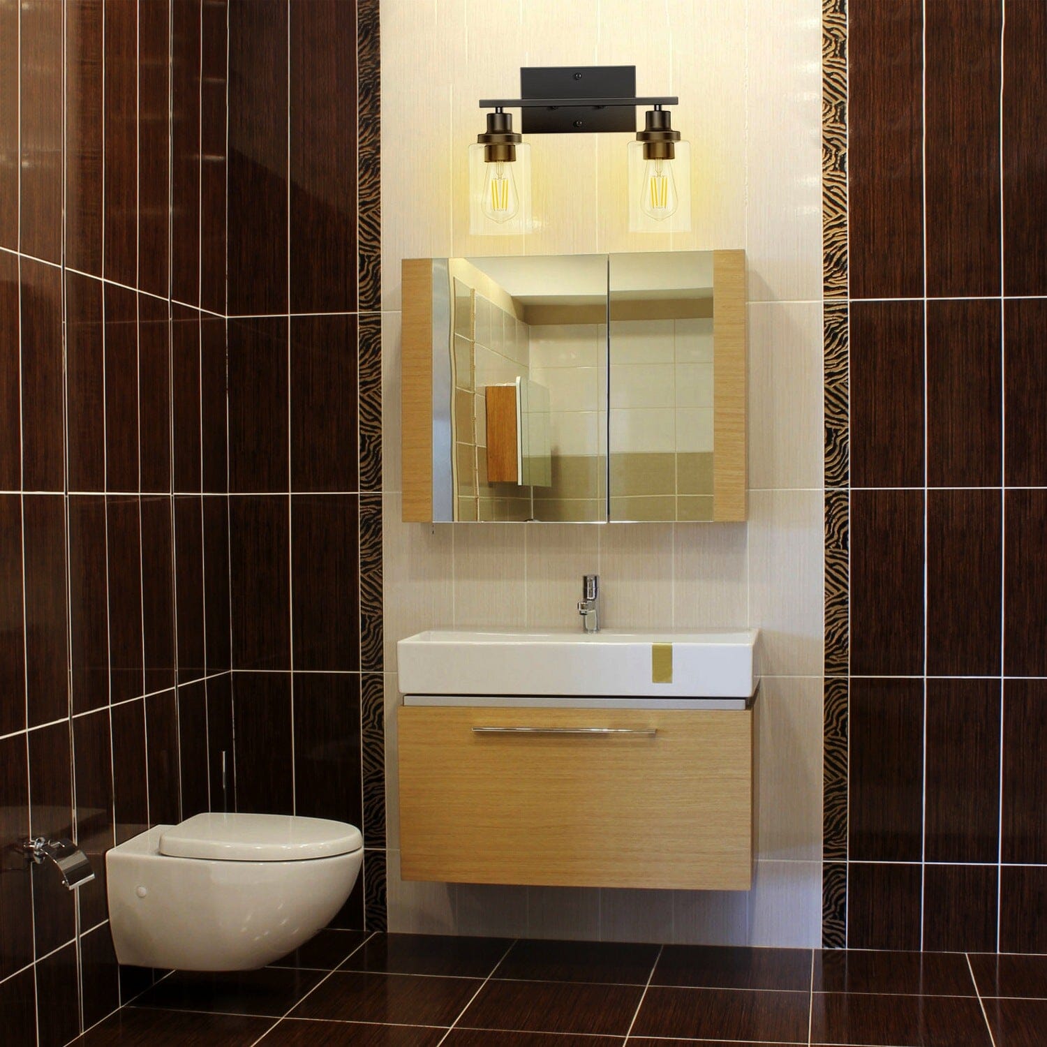 When it comes to your home, the bathroom requires versatile lighting for activities like shaving and makeup application more than any other space. Install this wall lamp above your sink or vanity to get the essential lighting needed for these important tasks! The matte black lampshade brings a chic, sophisticated, and textured look. The clear cylindrical glass shades allow light to spread in all directions, ensuring uniform brightness for both your face and surroundings. You can opt for either a 2-head or 3-head lamp based on your specific needs.