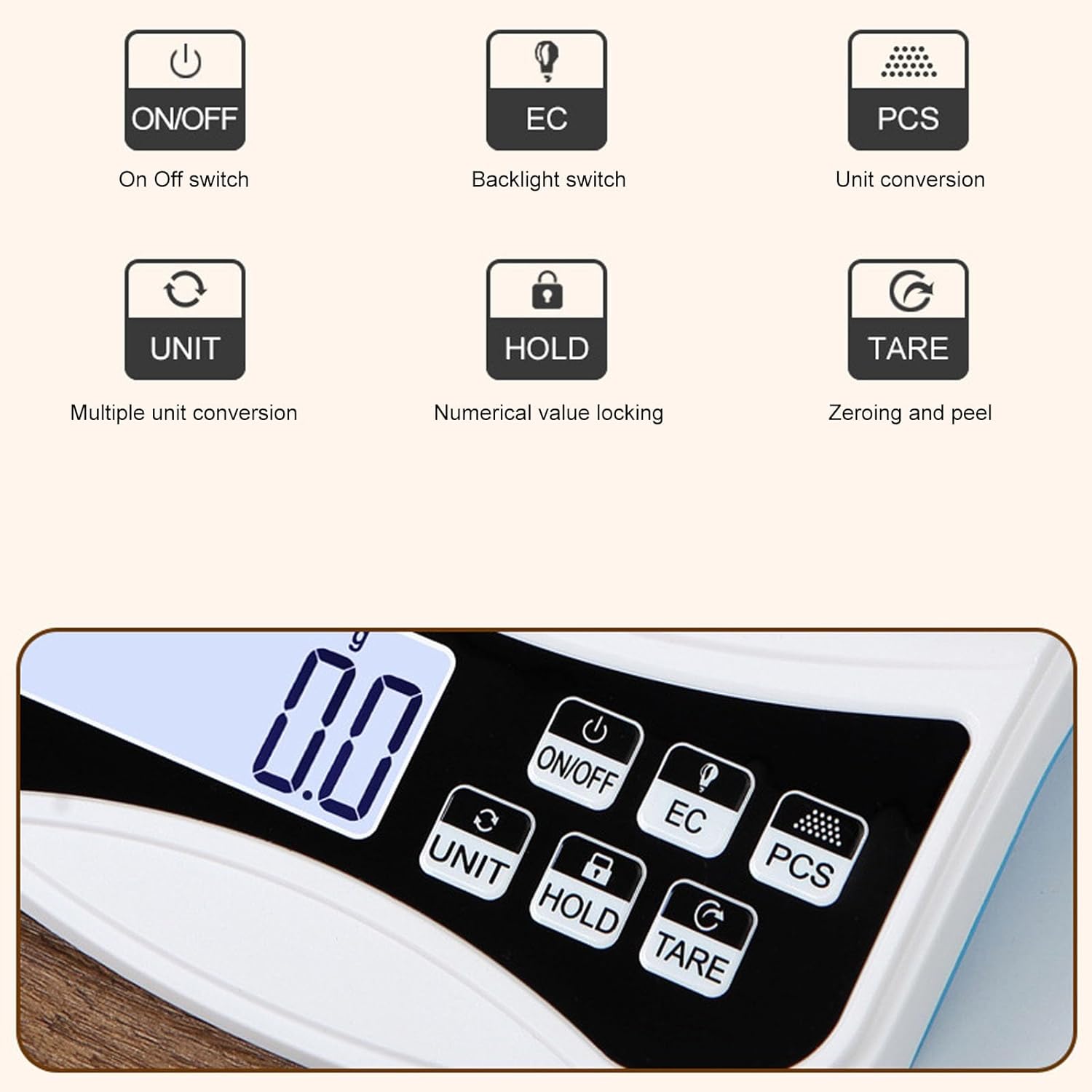 Experience unparalleled accuracy with our Skorter digital kitchen scale, which delivers precision of 0.1 g/0.004 oz. With a maximum capacity of 5 kg and equipped with 4 precision sensors, this Skorter provides reliable measurements every time you use it.