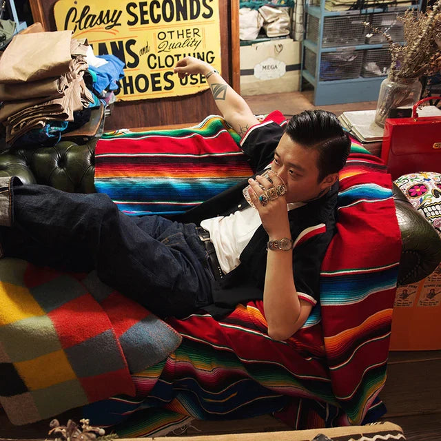 Inject some color into your home with this lively Mexican Serape blanket, showcasing bold rainbow stripes in a classic, celebratory design. This blanket is ideal for bringing a burst of color to your bed or couch and infuses any space with a spirited Southwest-inspired vibe. Its lightweight nature makes it cozy enough for cuddling or serves as an eye-catching accent piece that radiates warmth and joy.