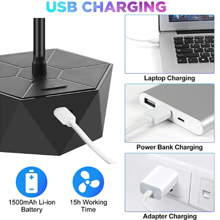 After being fully charged, the fan can operate for several hours, depending on the surrounding conditions. It’s perfect for meals, events, or nighttime gatherings.