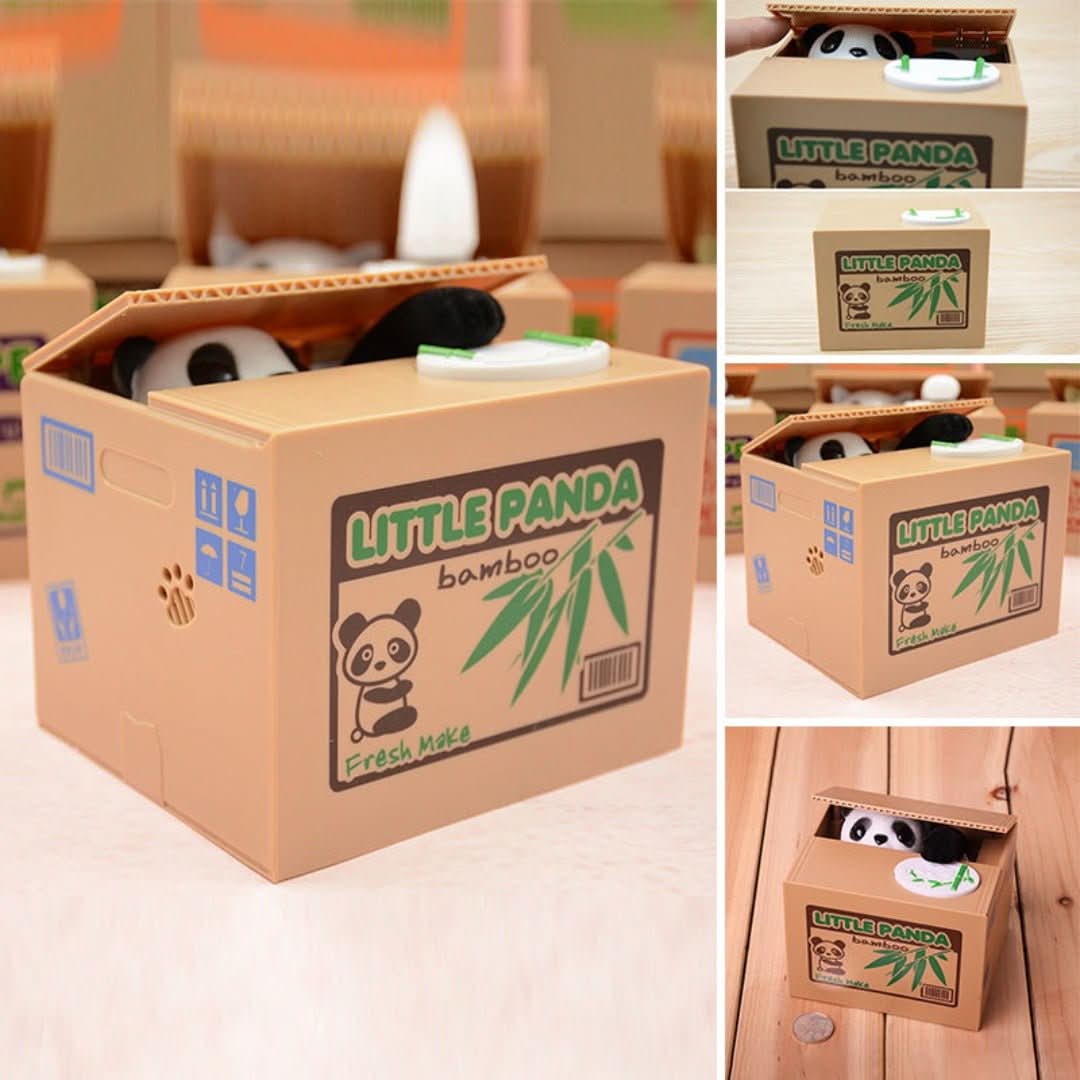 The Adorable Panda Piggy Bank features an engaging design that entertains users of any age. Witness the panda pop out of the box to "steal" your coin with its fun antics.