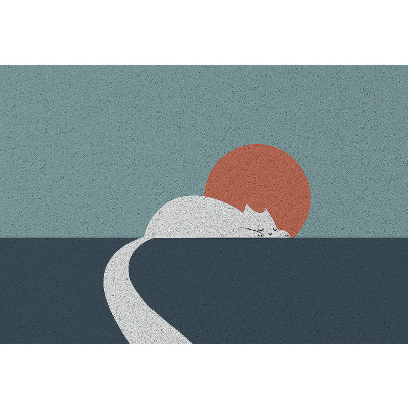 Skorter | Beautiful cat pattern rug with sun green children's rug vinyl washable non-slip area rug for the children's room