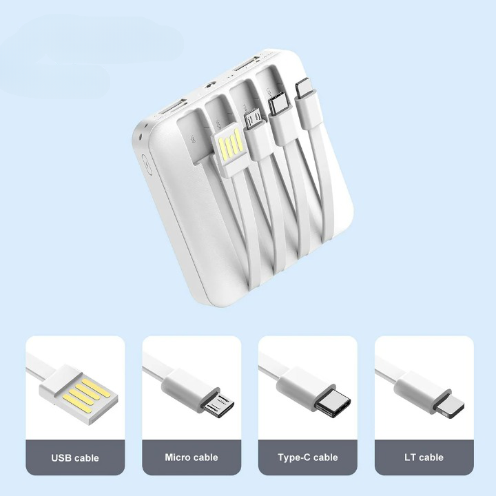 The Mini Solar Power Bank is an essential gadget for anyone who enjoys outdoor activities. Featuring four charging cables and an LED flashlight, it's perfect for camping, hiking, and urgent charging needs. Its lightweight design ensures that you can take it with you wherever you go.