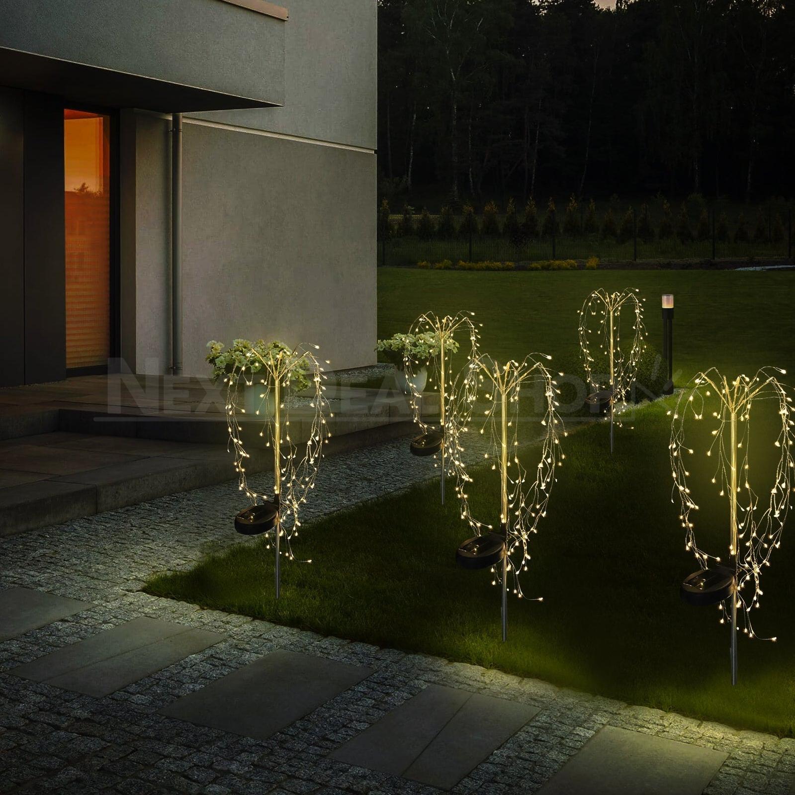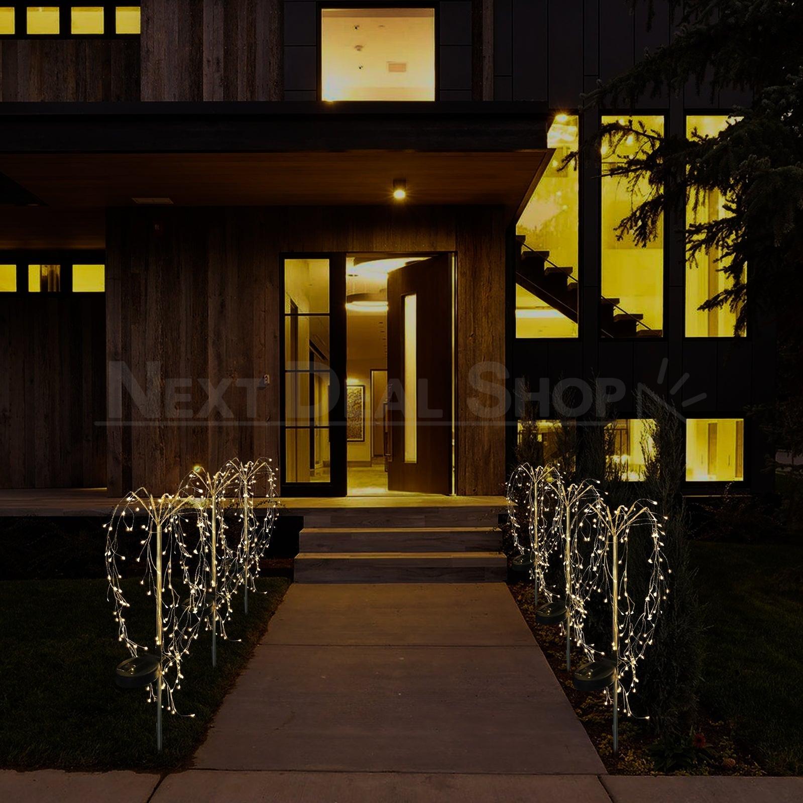 Enhance your outdoor ambiance with the Solar Powered Firework Tree Stake Light. These LED lights are adjustable, allowing you to customize their shape to suit your unique taste while utilizing solar power, making them environmentally friendly and cost-effective.
