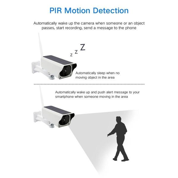 This camera functions entirely without wires, providing a hassle-free installation experience. It can be powered in two distinct ways: via solar energy or traditional batteries. It's important to note that in order for the solar panels to operate effectively, a battery is required, as the solar charging system depends on the battery charged by the solar panels to run the camera. Thus, optimal performance cannot be achieved if the camera depends only on the solar panel without having a battery present.