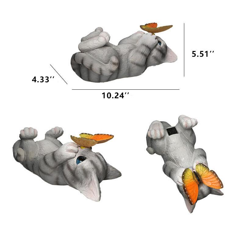 The SolarPurr garden light serves as more than merely a source of illumination – it is a chic ornamental piece for your outdoor area. The creatively crafted cat figurine paired with a softly glowing butterfly fosters a welcoming and magical ambiance in your garden, on your patio, or your balcony. With its built-in solar panel, this piece operates independently of electrical outlets and delivers eco-friendly, sustainable lighting. This durable, all-weather LED ornament skillfully merges aesthetics with practicality. Whether it is standing, reclining, or seated – the assorted styles introduce diversity and blend seamlessly into any setting.