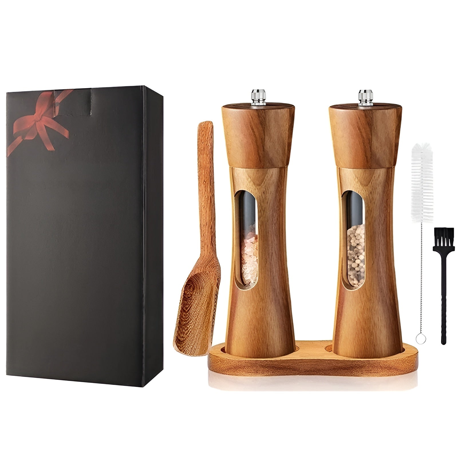 Introducing the SpiceCraft Salt & Pepper Grinder Set, a blend of sophisticated design and precise grinding. With a high-quality wooden finish complemented by a transparent acrylic window, this set adds style, efficacy, and taste to your kitchen. Relish the ideal grind consistently — smooth, uniform, and resistant to moisture for enduring freshness.