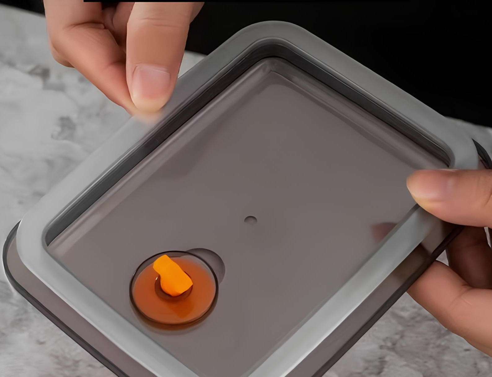 On top, the lid features a vent for air release. This mechanism extracts air from’the inside of the container when sealed, which ensures a vacuum storage and significantly slows down spoilage.