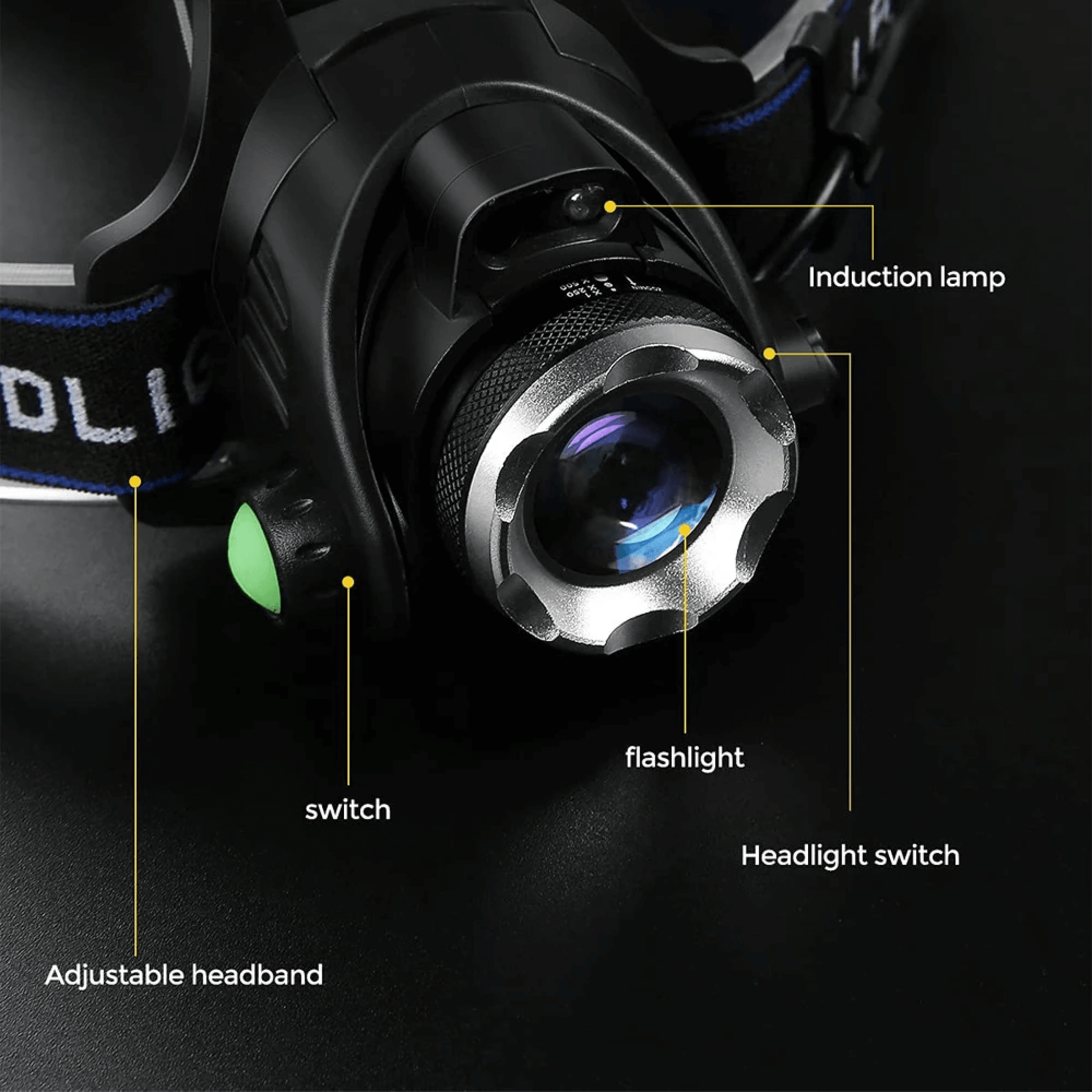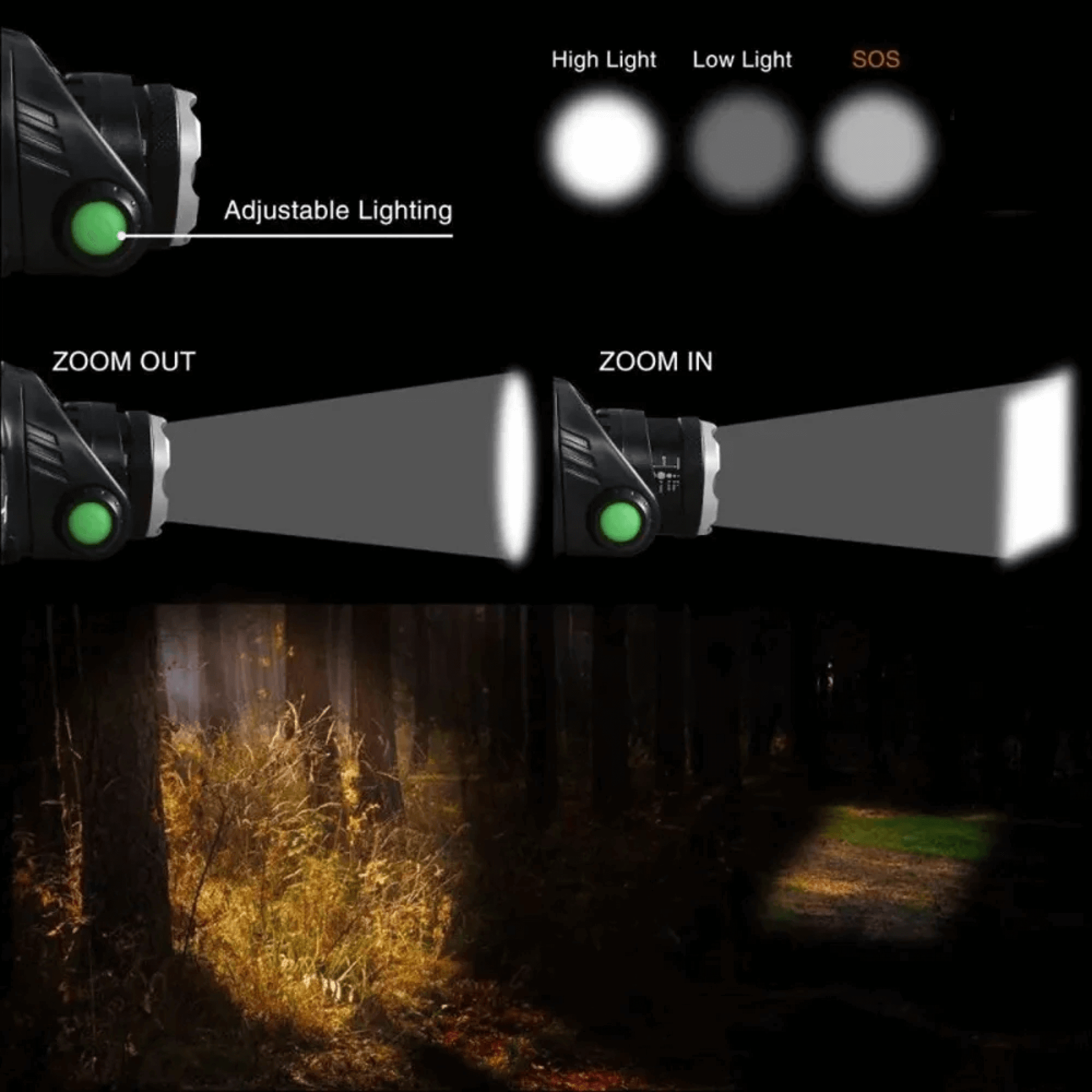 This Rechargeable Headtorch is crafted to provide flexibility and ease, making it suitable for various tasks. With four distinctive lighting modes—super bright, bright, SOS flashing, and induction mode—this LED headlamp is equipped for any situation.