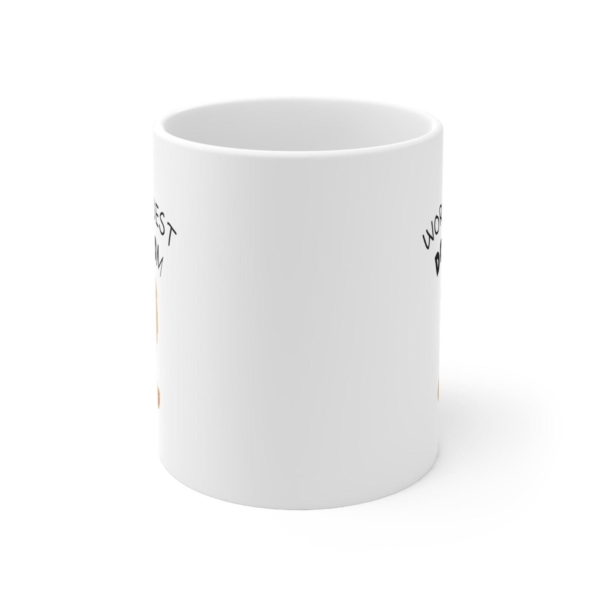 Skorter Best Dog Mom Novelty Mug. This mug is both microwave and dishwasher-safe, crafted from sturdy white ceramic and holds 11 ounces. It makes an ideal gift for enthusiasts of coffee, tea, and chocolate.