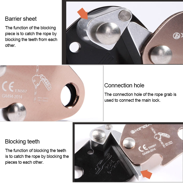 Skorter | XINDA EN567 Outdoor Rock Climbing Aerial Work Anti-fall Rope Gripper for 8-13mm Diameter Rope