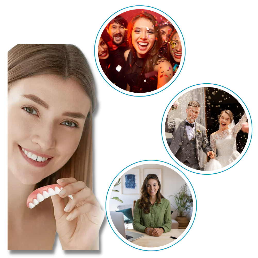Our Snap-On Veneer Teeth are designed with versatility in mind, making them the perfect accessory for any event in your life. From significant milestones like weddings and interviews to everyday moments where you just want to feel your best, these veneers offer the flexibility and confidence you need. They serve as an excellent temporary solution for those exploring cosmetic dentistry options or anyone looking for a non-invasive way to enhance their smile. With our veneers, you can step into any room or situation knowing your smile is your best feature.