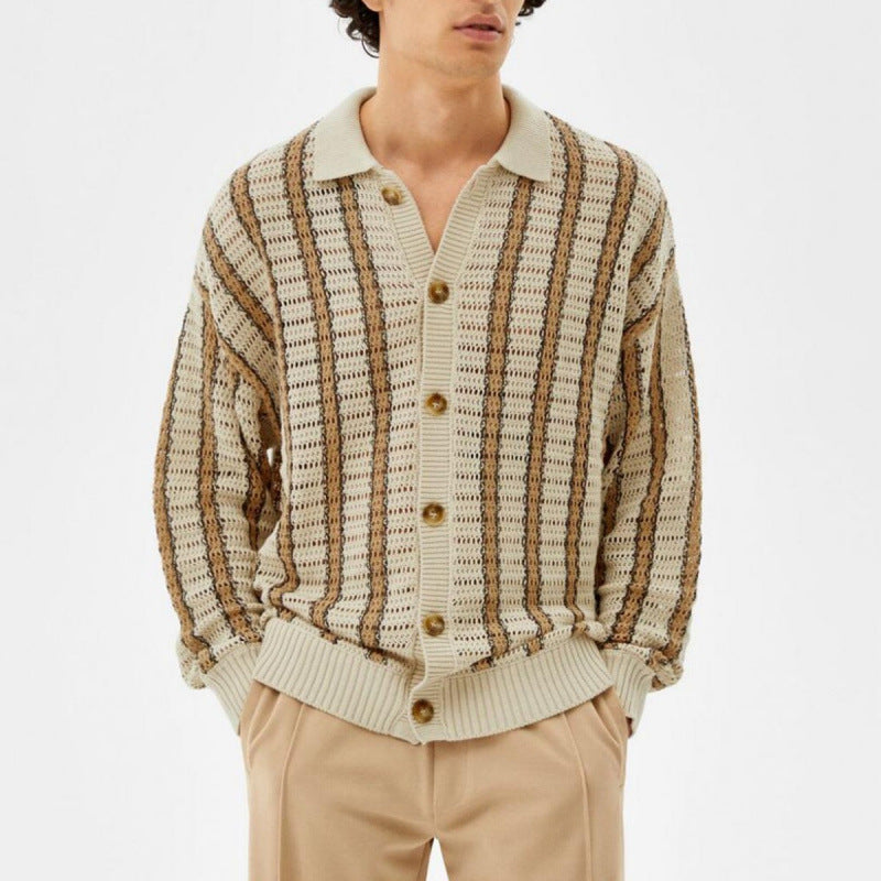 Upptäck den snygga herrkoftan från Skorter, som erbjuder ett modernt utseende med sitt unika hålmönster och eleganta design. Denna kofta kombinerar komfort och stil, vilket gör den perfekt för olika tillfällen.