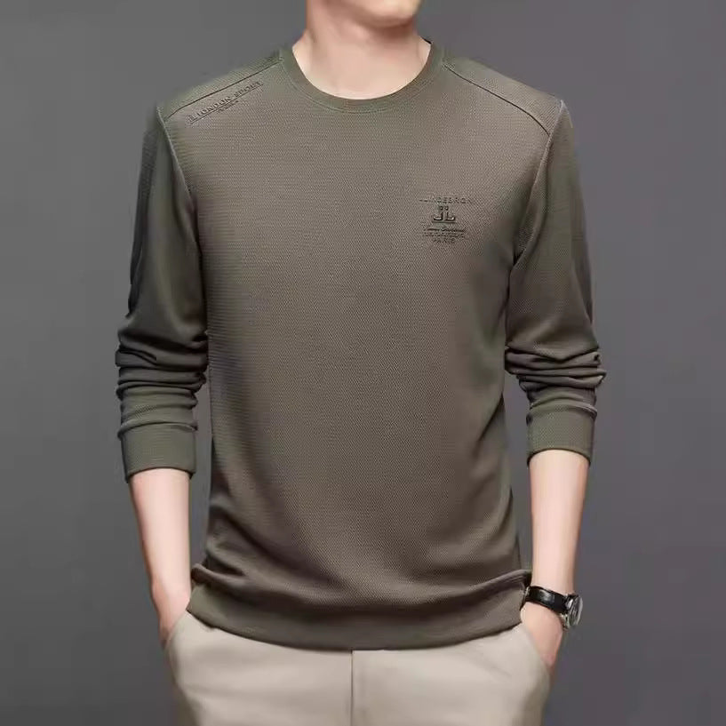 Upptäck den här långärmade sporttröjan för män med texturerat mönster från Skorter, perfekt för både fritids- och sportaktiviteter. Denna tröja kombinerar funktionalitet och snygg design för att ge dig både komfort och ett modernt utseende.