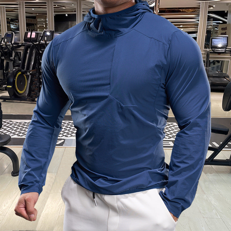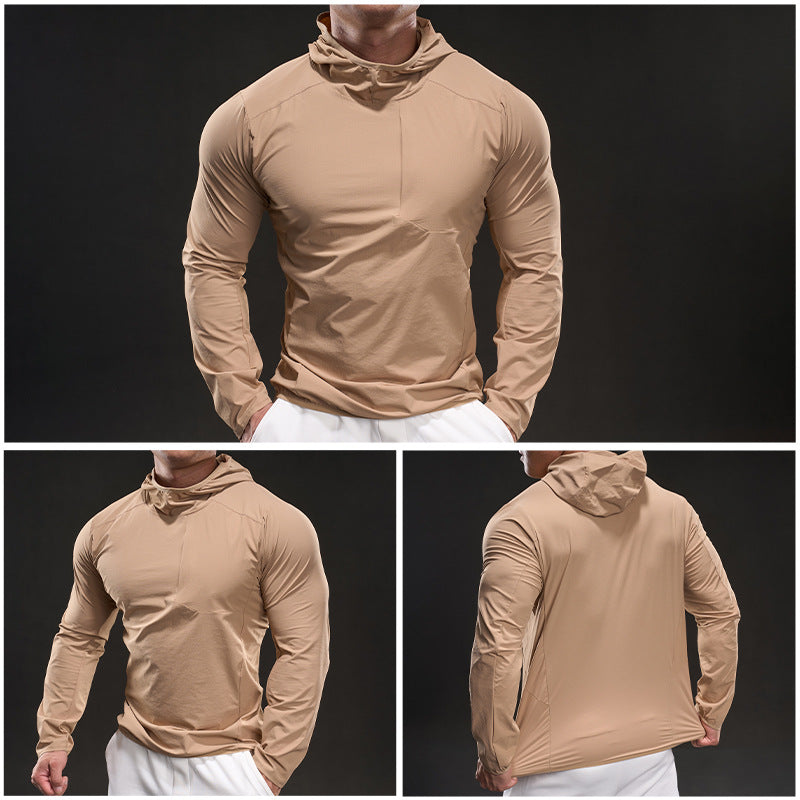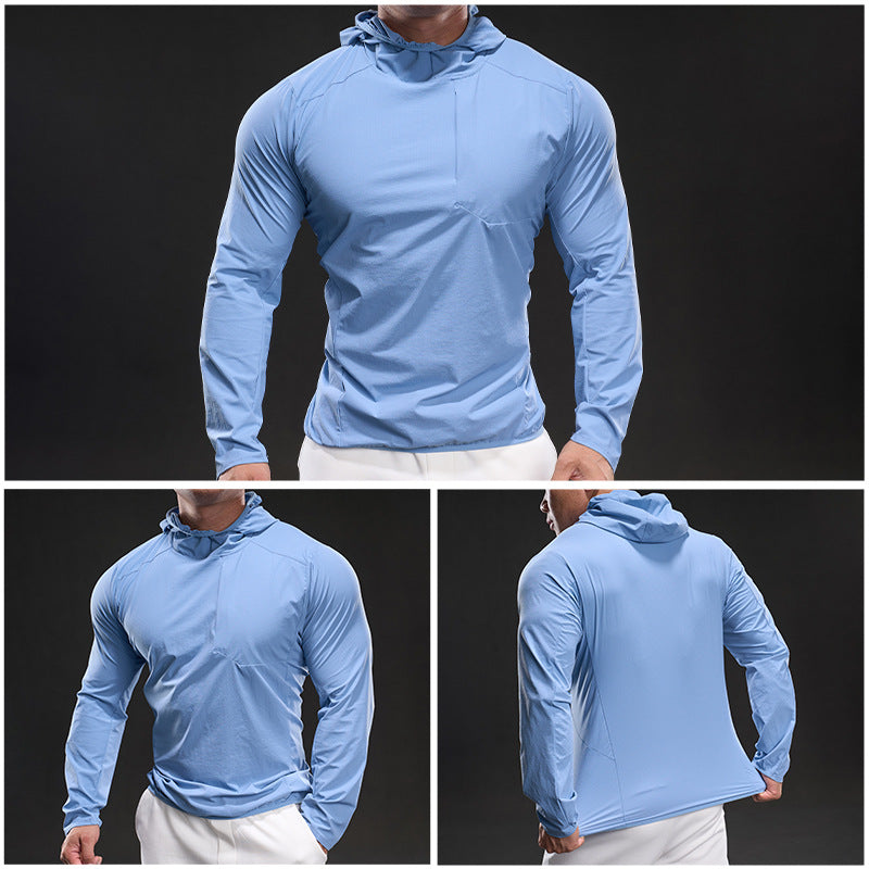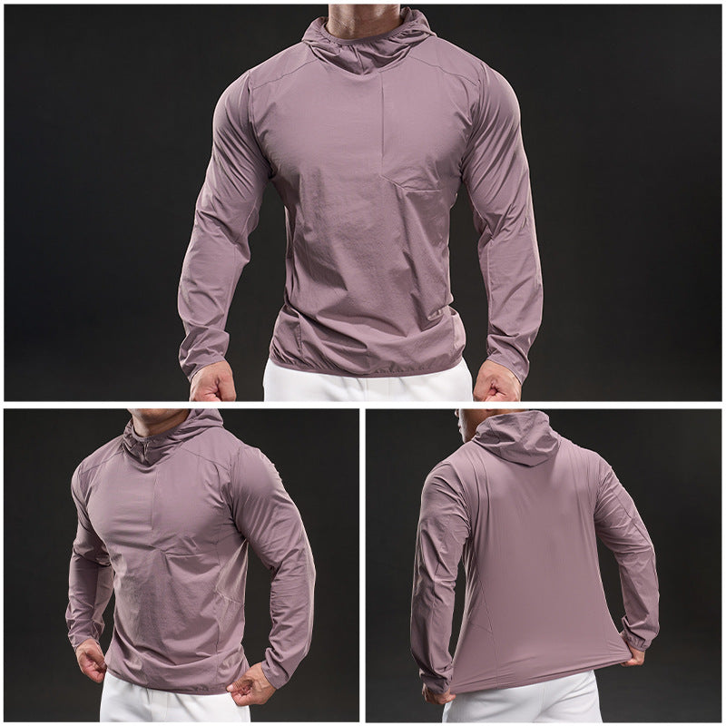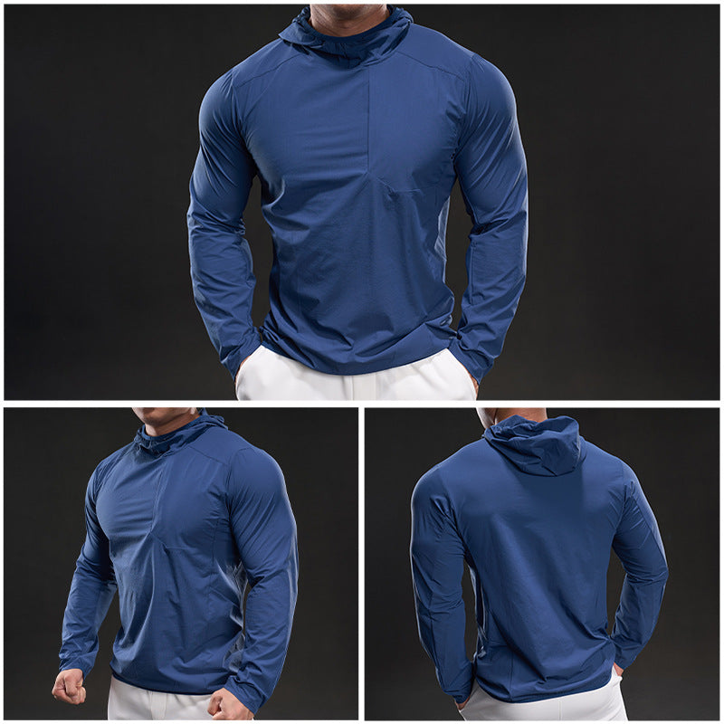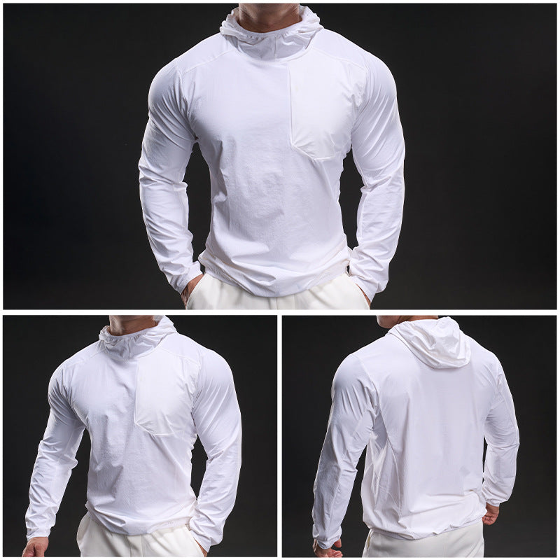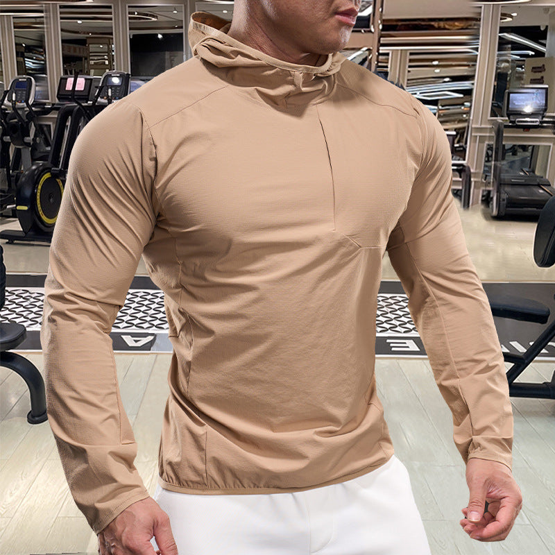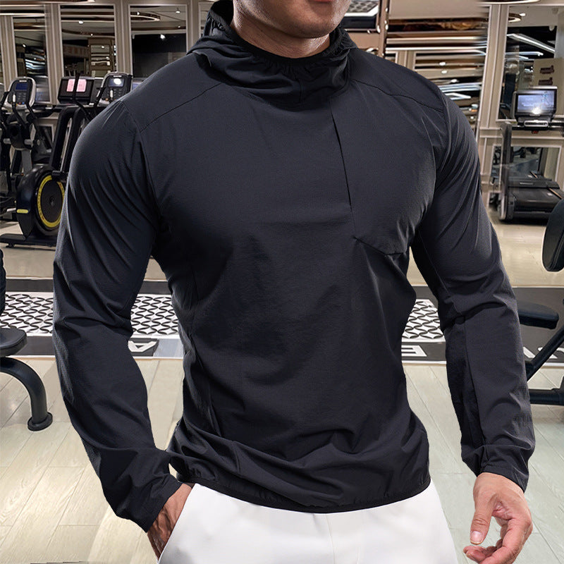 Upptäck den andningsbara träningstoppen med huva och dragkedja i fickan för herrar, Skorter, speciellt utformad för aktiva män som uppskattar komfort och funktionalitet.
