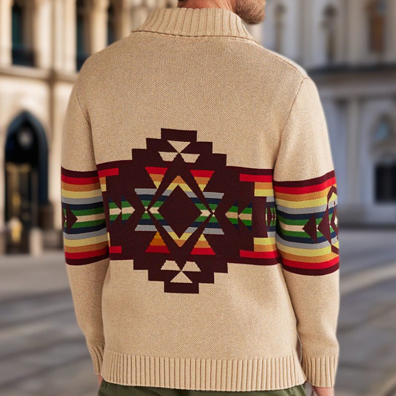 Upptäck herrkoftan med färgglada mönster och bekväm sjalkrage från Skorter – det perfekta plagget för kalla dagar. Denna snygga kofta imponerar med sin unika design som kombinerar en modern look med en touch av traditionell stil.