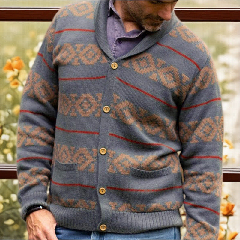 Upptäck den perfekta blandningen av stil och komfort med vår högkvalitativa herrkofta. Denna moderna kofta kombinerar ett modernt geometriskt mönster med praktiska funktioner och kommer snabbt att bli en viktig del av din garderob.