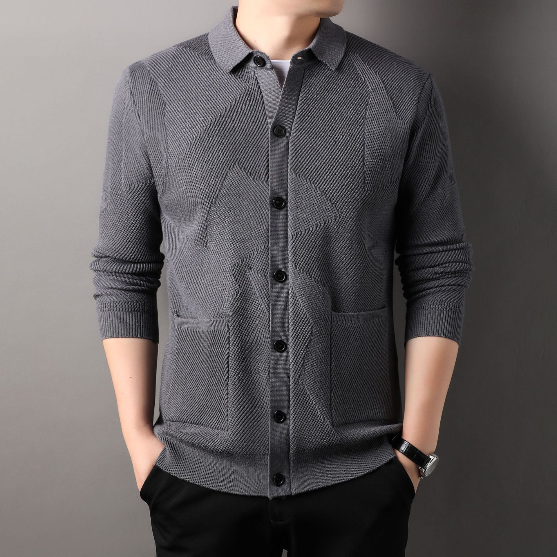 Upptäck den snygga herrkoftan från Skorter, som kännetecknas av sin moderna texturerade design. Denna kofta är inte bara moderiktig utan också extremt bekväm och mångsidig.