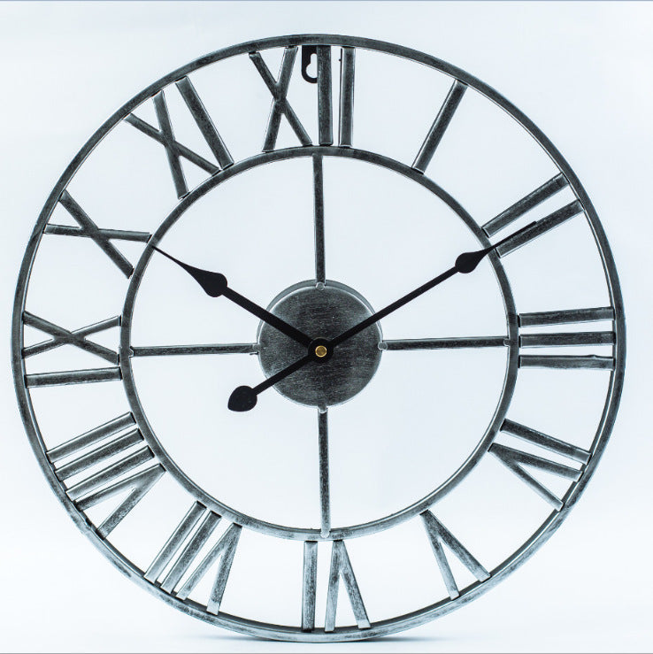 Förhöj ditt utrymme med vår 40 cm stora väggklocka i järn. Denna utsökta klocka har stora romerska siffror och är ljudlös. De sofistikerade romerska siffrorna ger en klassisk charm, kompletterad av den moderna, tysta mekanismen. Njut av den perfekta blandningen av traditionell och modern design när denna klocka blir en blickfångare i din inredning och sätter en ny standard med sin unika kombination av elegans och funktionalitet.