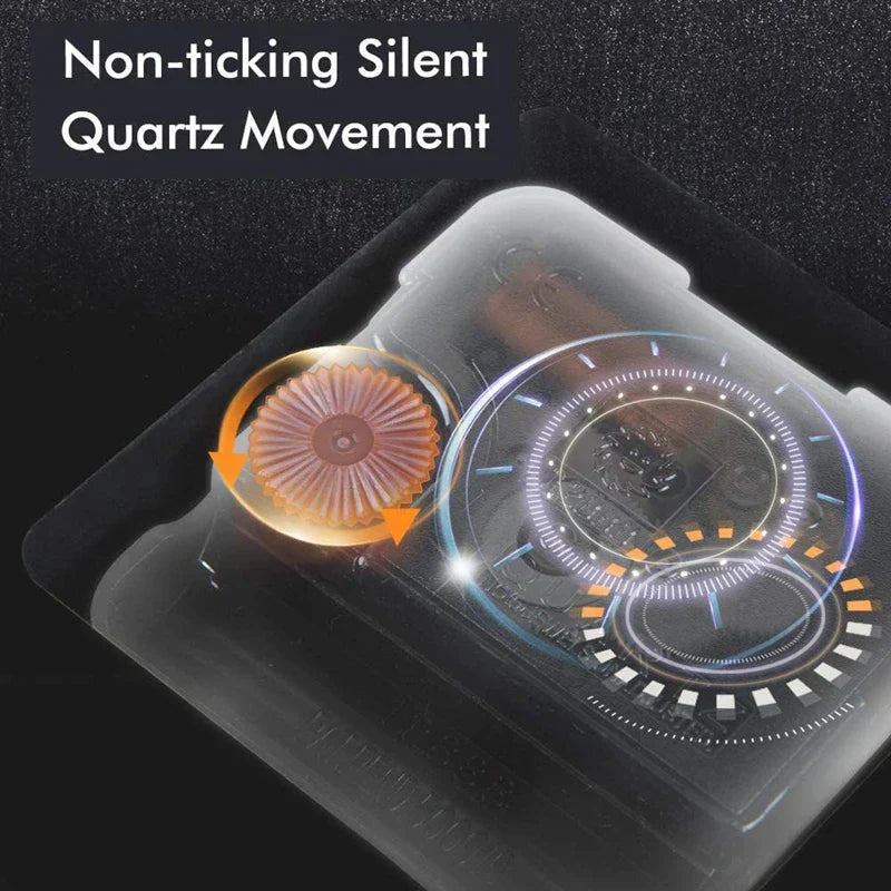 Denna tysta väggklocka är perfekt för alla miljöer, oavsett om det är ditt hem eller din arbetsplats. Trädetaljerna ger ett modernt och elegant utseende, medan den ljudlösa mekanismen skapar en lugn och rofylld atmosfär. Med sin exakta tidtagning och lättlästa urtavla är denna klocka både praktisk och visuellt tilltalande.