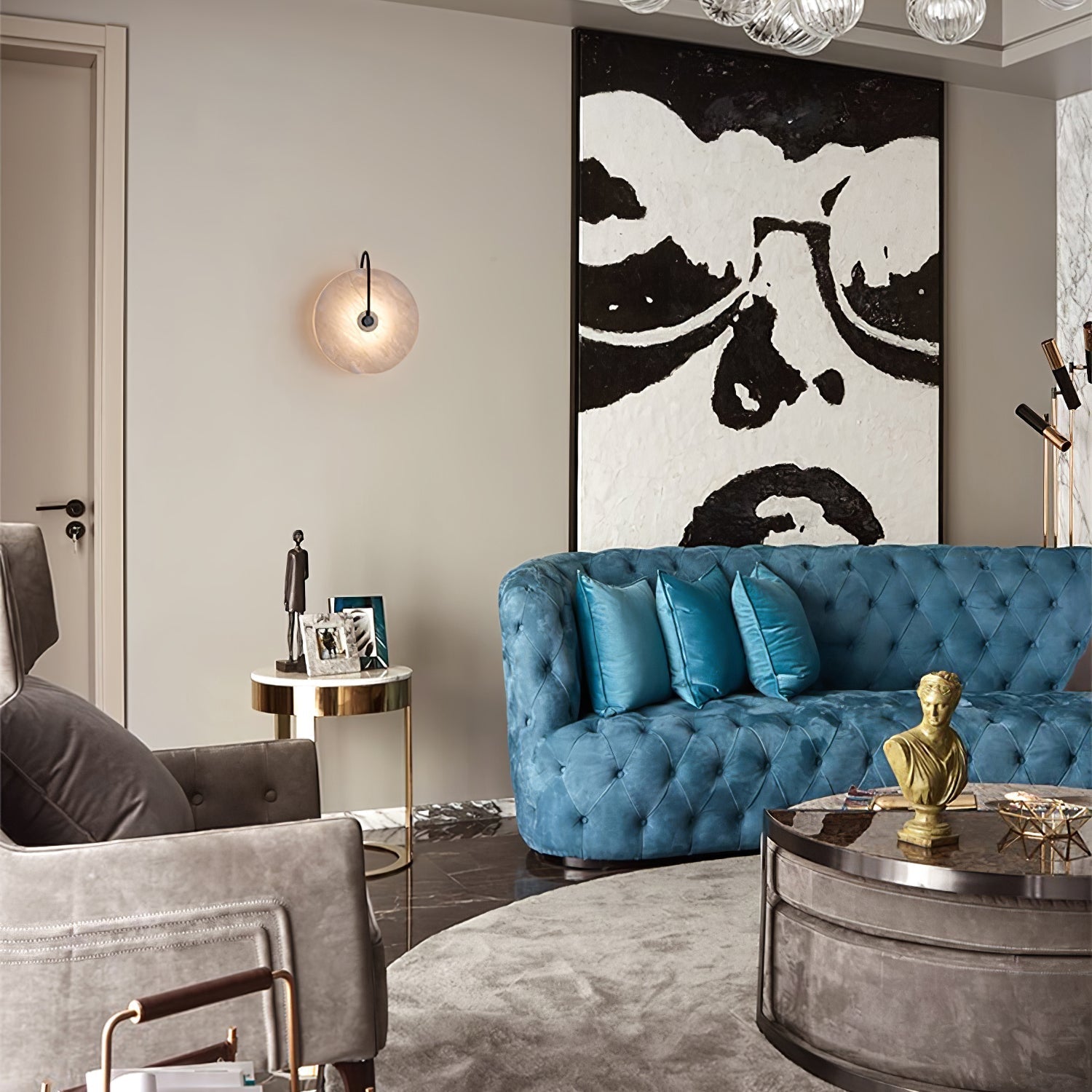 Vägglampan ADA Alabaster, tillverkad av äkta marmor, fungerar som ett utmärkt alternativ för att lysa upp sovrum, badrum, hallar och entréer.